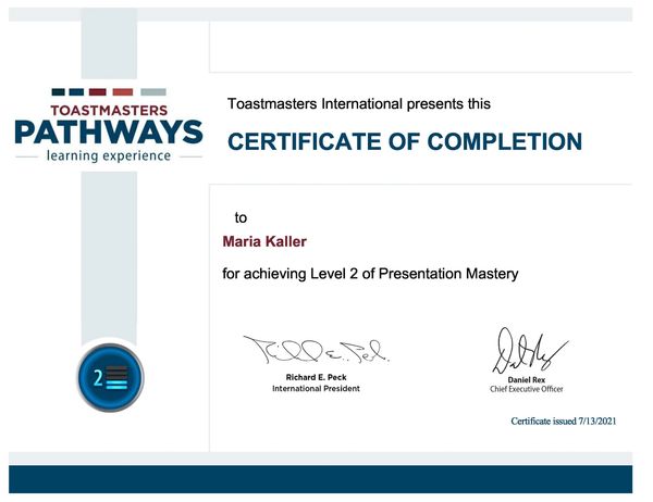 Mari Kaller completed Level 2 in her Presentation Mastery Path!